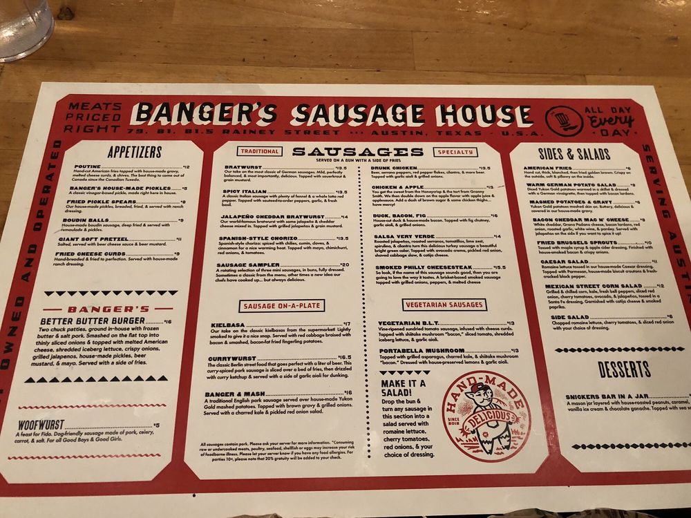 Bangers Sausage House & Beer Garden Menu (Update 2025)